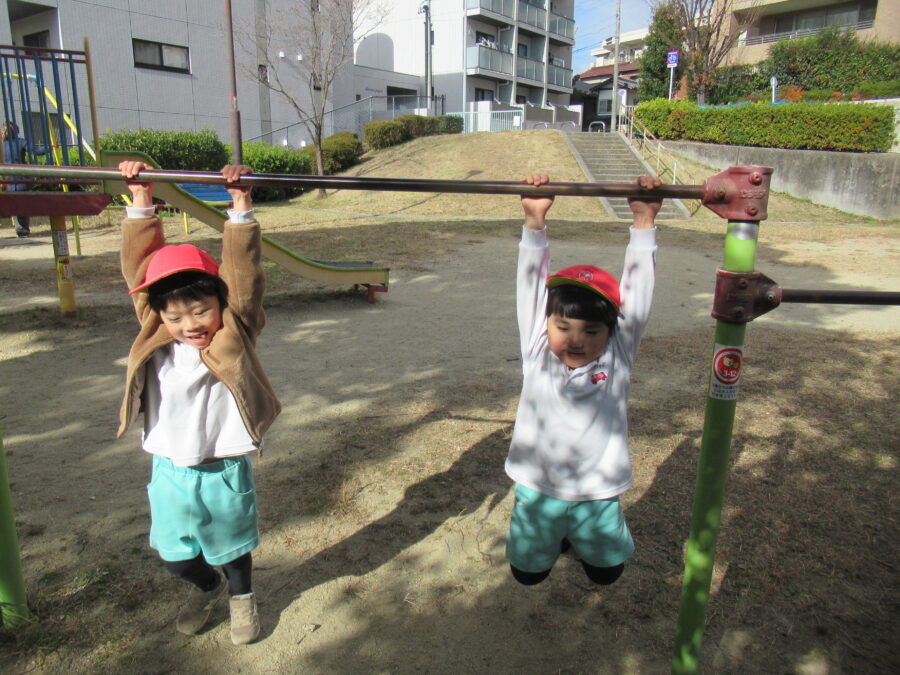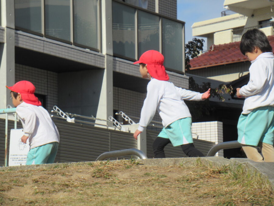 寒い中、元気に遊びました。 最近のブームは、みんなでかくれんぼ♬
