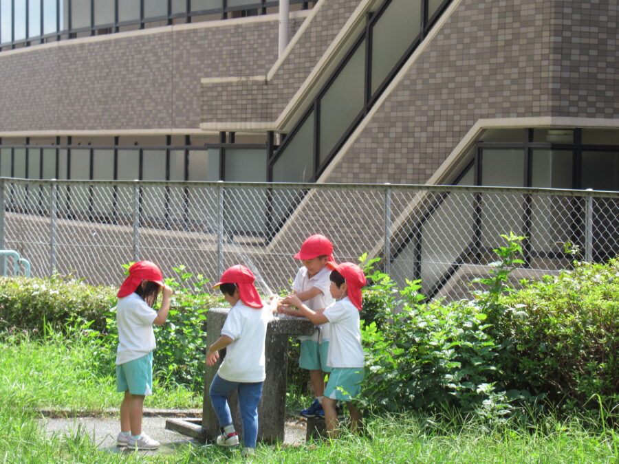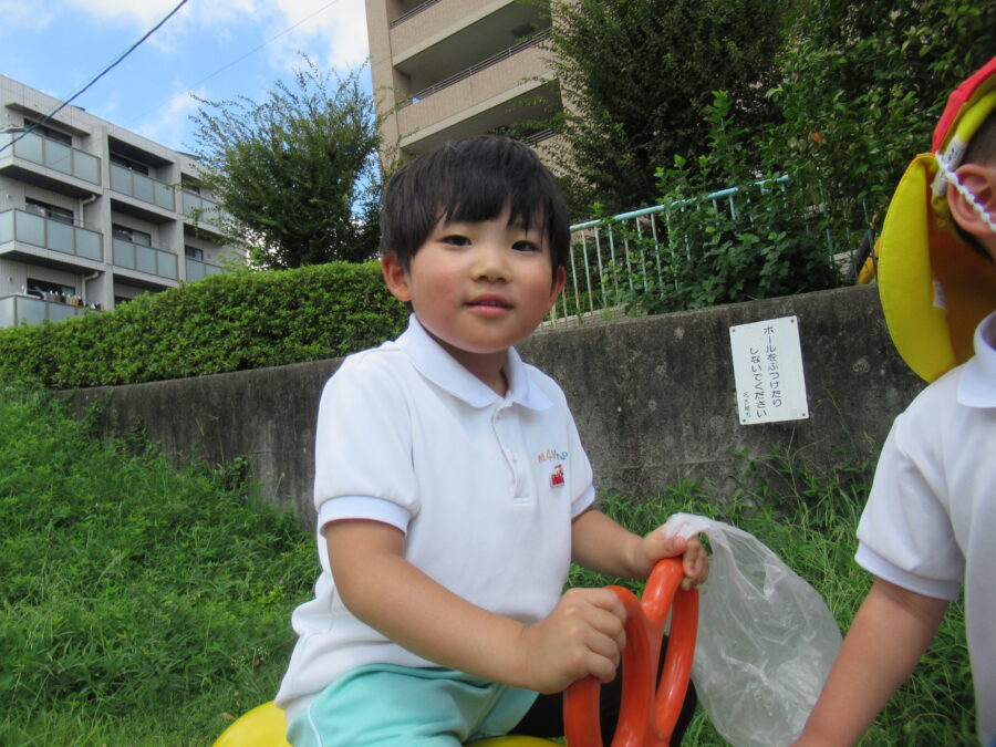 今日も暑い日でしたが…プール遊びに参加できるお友だちが少なく、みんなで近くの公園に行きました♬短い距離でしたが、歩いたら汗ベタベタ(>_<)