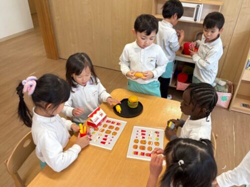 元気に登園したらいおん組はハンバーガー屋さんごっこに夢中です🍔🍟