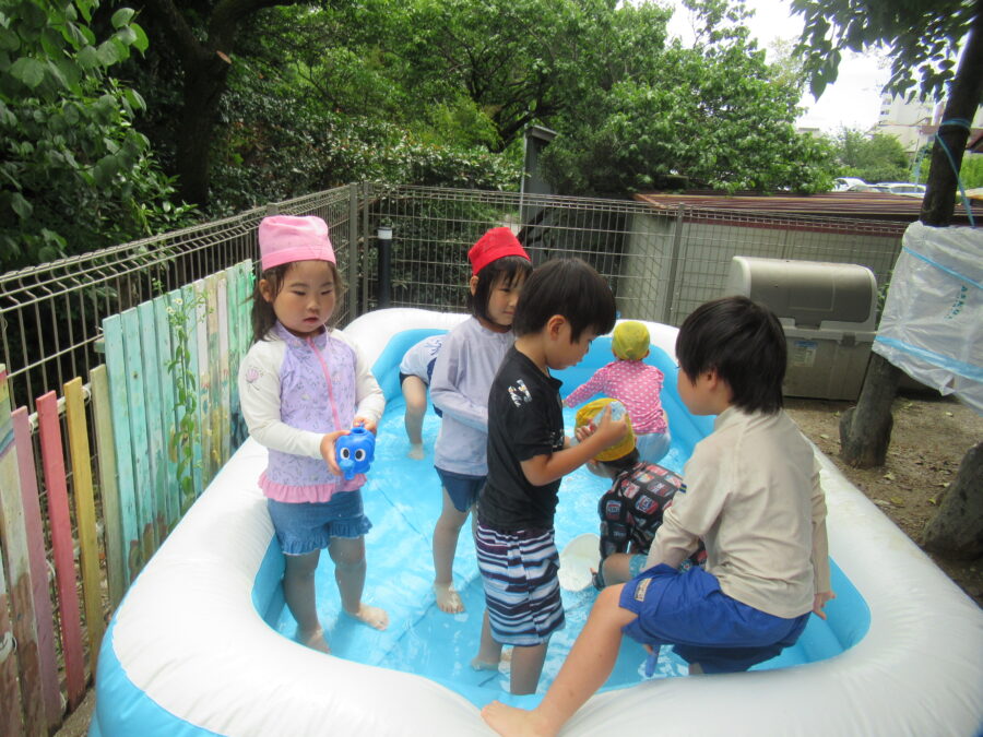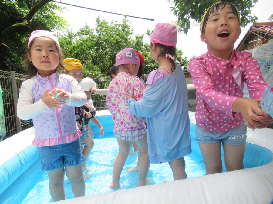 みんな楽しそうな表情で気持ち良さそうでした。 先生もみんなにお水をかけられて、べちゃべちゃだったけど、とってもたのしかったよ(^^♪」