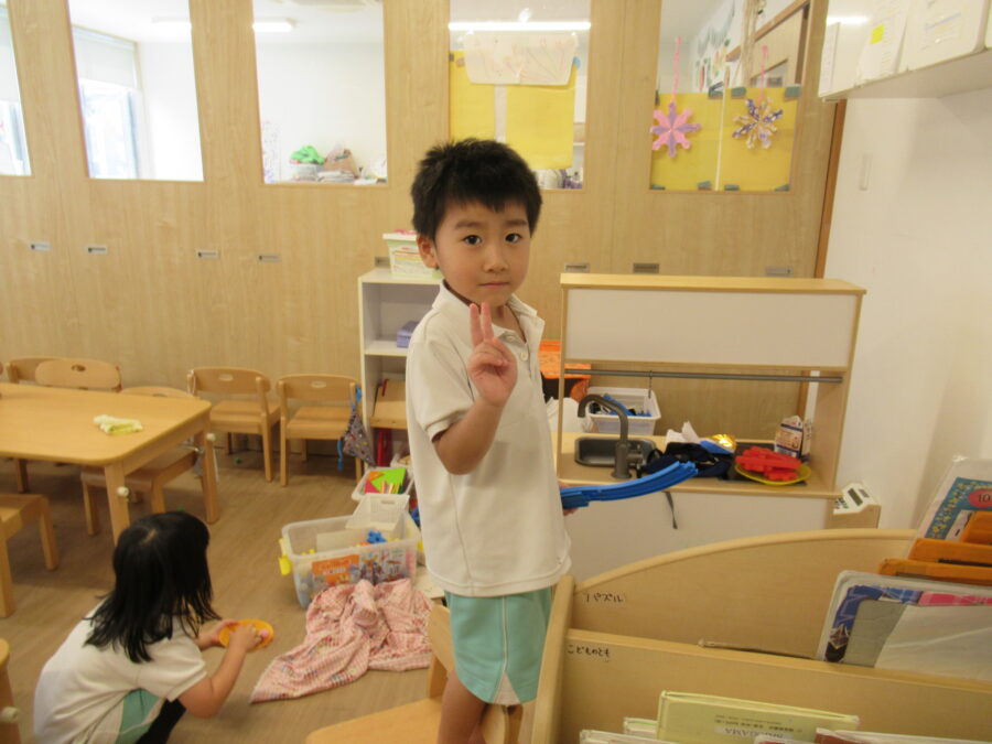 帰ってきてから、昼食を食べてお部屋で好きなごっこ遊びをする🦁さんでした。