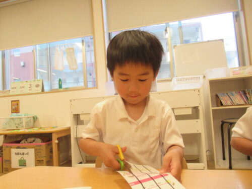はさみコーナーでは、ながーい線を切ることに挑戦★
