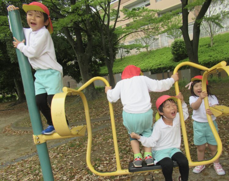 🦁🐘第三公園で遊んだよ🌱🦁🐘 一緒に第三公園で遊びにいきました🌱 るんるんで出かけた子どもたち バッタを見つけました🔍 袖にとまって大盛り上がり☺️ こちらの遊具では、 激しく揺れて楽しんでいました☺️ カテゴリ: 塩釜口(4~5歳) タグ: