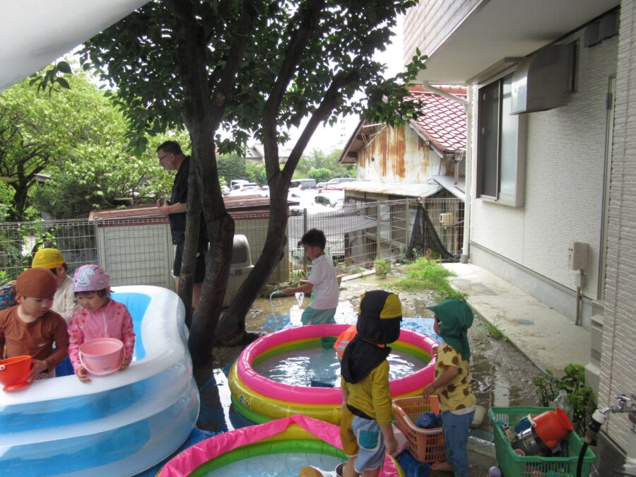 🦁🐼一緒にプールしたよ! 今日は🐼さんと🦁さんとプール遊びしました。プールの中で、おままごとをしていた🐼さん。お水をかけて楽しんでいた🦁さんでした。 カテゴリ: 塩釜口(2~3歳), 塩釜口(4~5歳) タグ:
