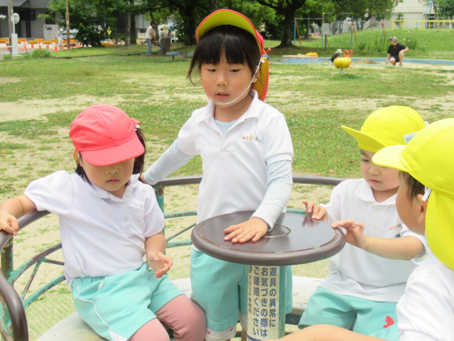 🦁🐼大坪公園にいきました 🦋を探したり、だんごむし探したり、虫さん探しが大好きなみんな(^^♪ くるくる回る遊具も大好き♡だけど、みている先生が目が回りそうだったな~(>_<) 今日は、蒸し暑い日だったね(>_<) カテゴリ: 塩釜口(2~3歳), 塩釜口(4~5歳) タグ: