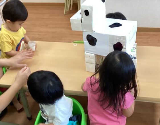 今日は牛さんの搾乳ごっこをしました‼️