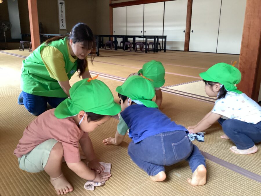 今日は、キリン組さんは近くのお寺に行きお掃除のボランティアをしました。