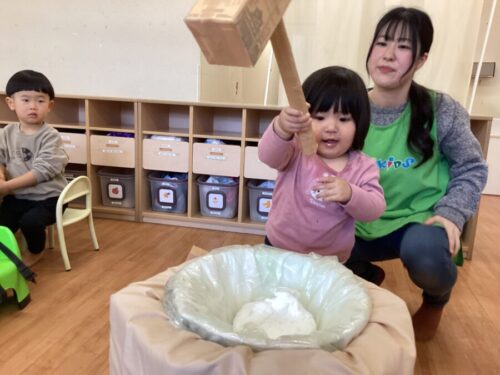 お楽しみ会の内容は…お餅つき(ごっこ)大会〜✨