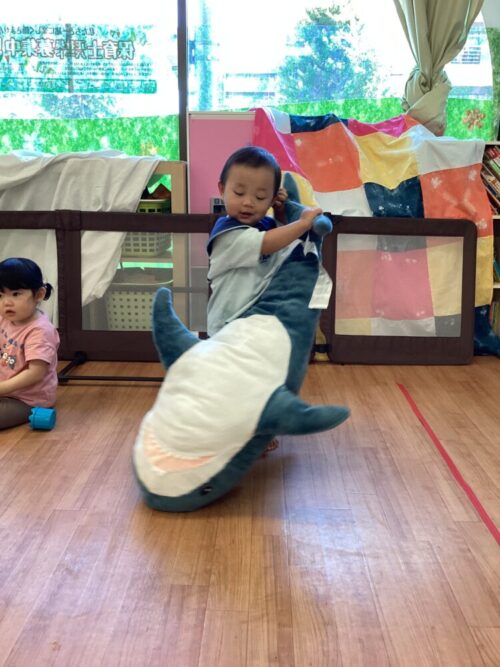大きなサメの人形もいまなら思う存分に遊べます!!