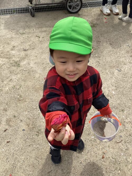 大きなお花が落ちてるのを見つけて見せてくれました٩(๑❛ᴗ❛๑)۶