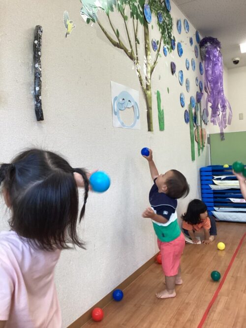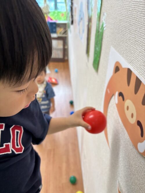 ボールを投げながら、思わず自分も一緒にピョンッ😆