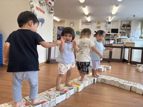 牛乳パックの積み木で線路を作ったりもしましたよ〜〜