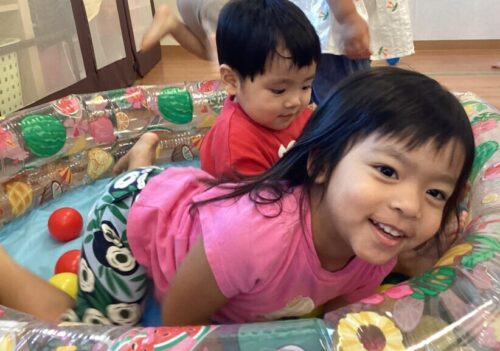 お水に見立てて投げてみたり、プールの中でバシャバシャと泳いでみる姿が伺えました🩵