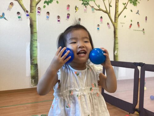 「アンパンマン‼︎」とほっぺたにボールを当ててアンパンマンポーズを見せてくれましたよ♪