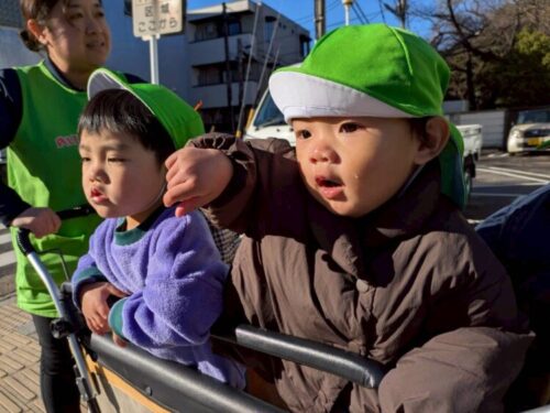 いつもは乗らない子がカートに乗っているので
