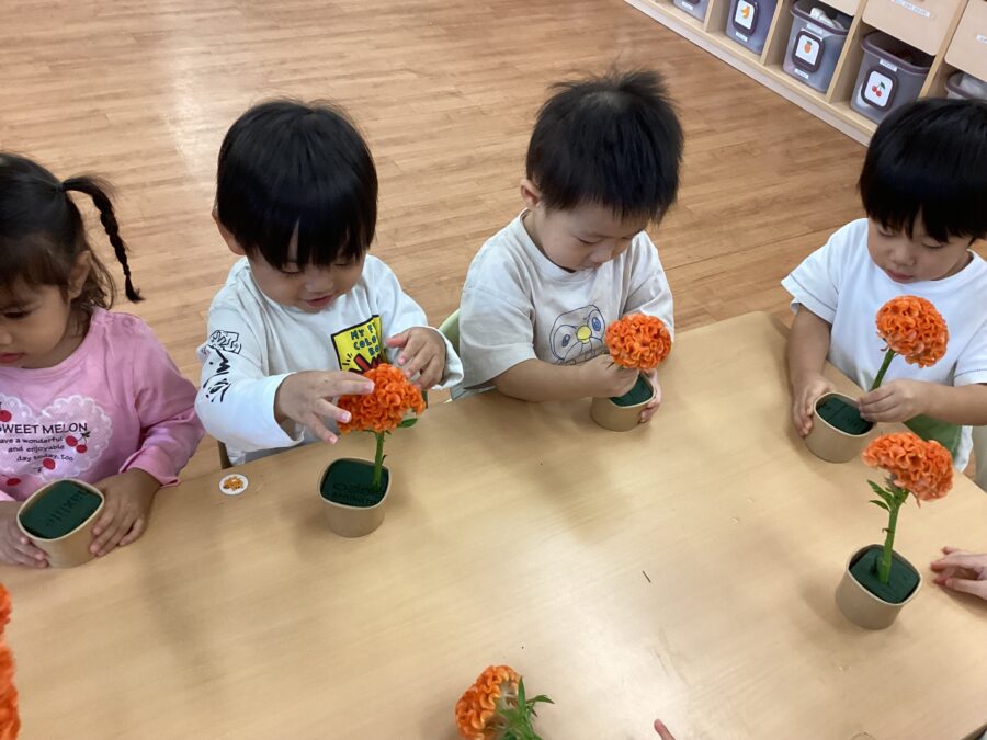 「いい匂いするねー」「かわいいねー」などお話を楽しみながら取り組んでいましたよ٩(๑❛ᴗ❛๑)۶