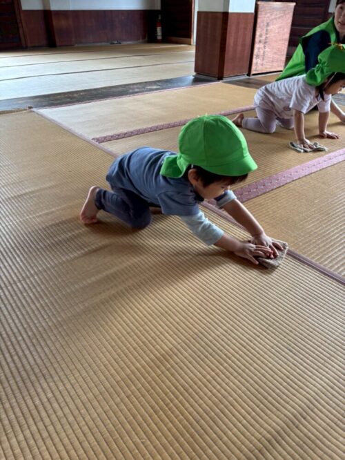 雑巾にしっかり手を置いて 雑巾とともに前に進んでいきます!