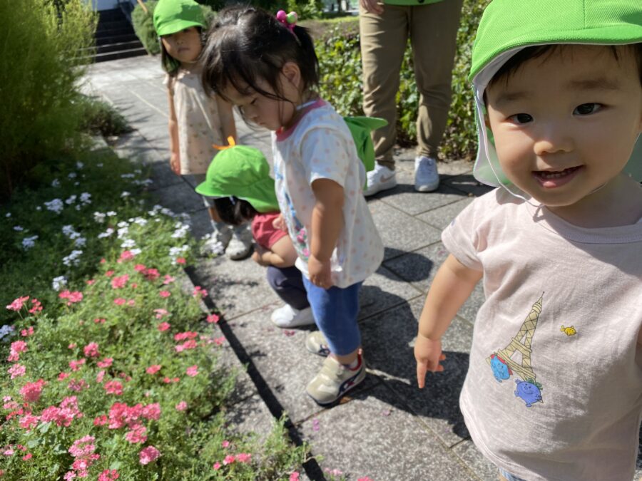 綺麗なお花が咲いていました!優しく触ってね!と言うとチョンチョンと言いながら触っていて可愛らしかったです⭐️