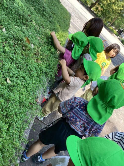 葉っぱをめくって観察に夢中の子供達でした٩(๑❛ᴗ❛๑)۶