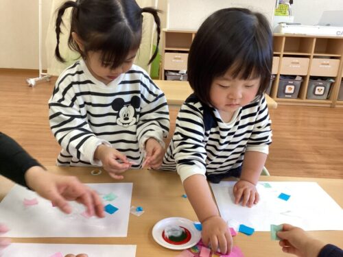 ひよこ組さんとうさぎ組さんはお部屋で制作と、おもちゃ遊びしました