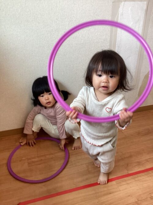 下から上に向かってフープを通したりしました!