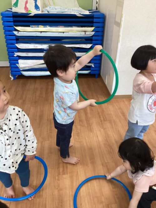 フープを使って体操をしました!