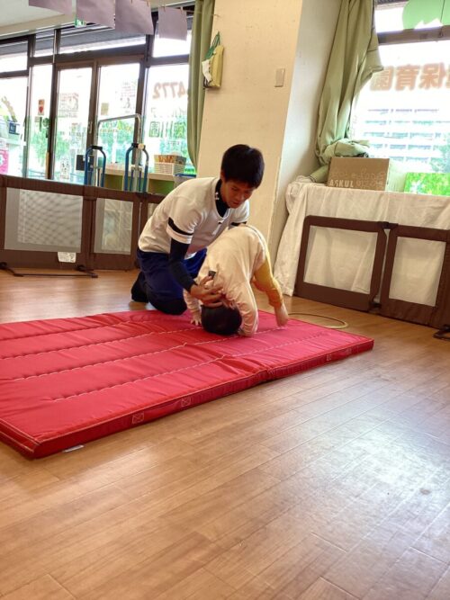 名前を呼ばれると嬉しそうに黄色の輪の中に立つうさぎ組さん!