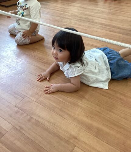 ロープに触れないように潜りますよ〜〜〜