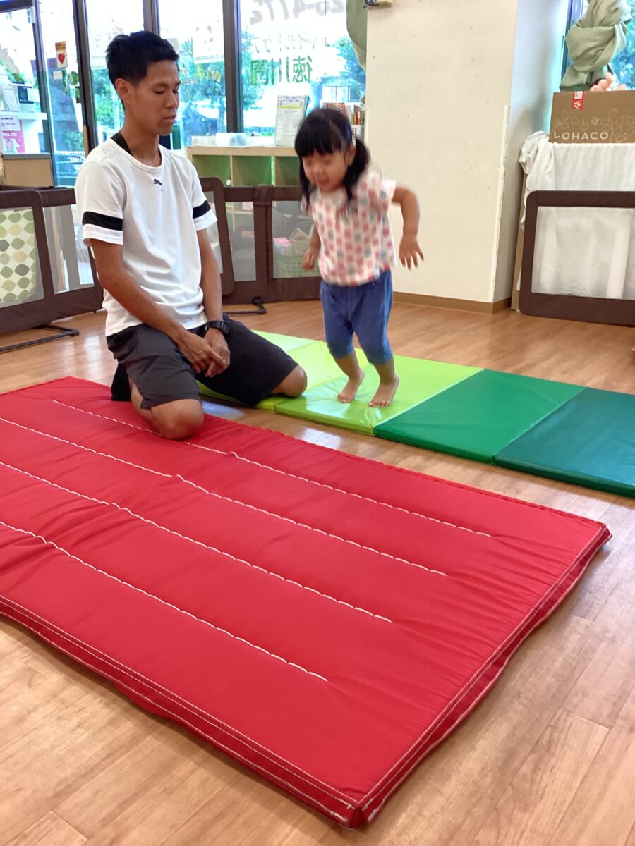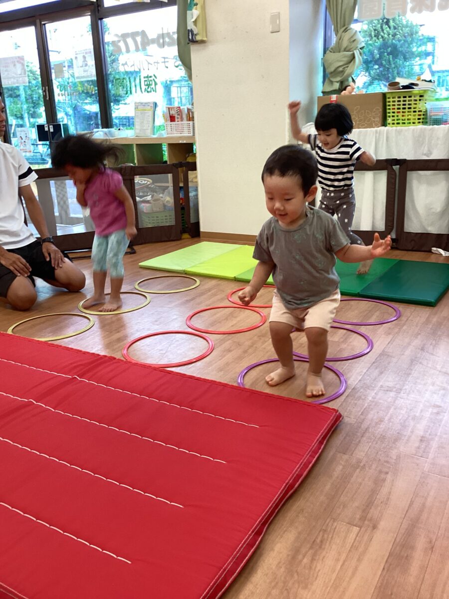 マットとマットの間をジャンプをしたり、フープの中をケンケンを披露していましたよ♪(๑ᴖ◡ᴖ๑)♪