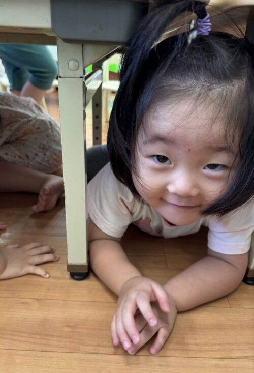 うさぎ組さんも上手に机の下に潜ることができました👏