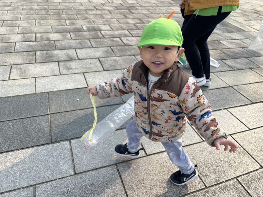 以前、作った凧をを持って広場へお出かけ♪