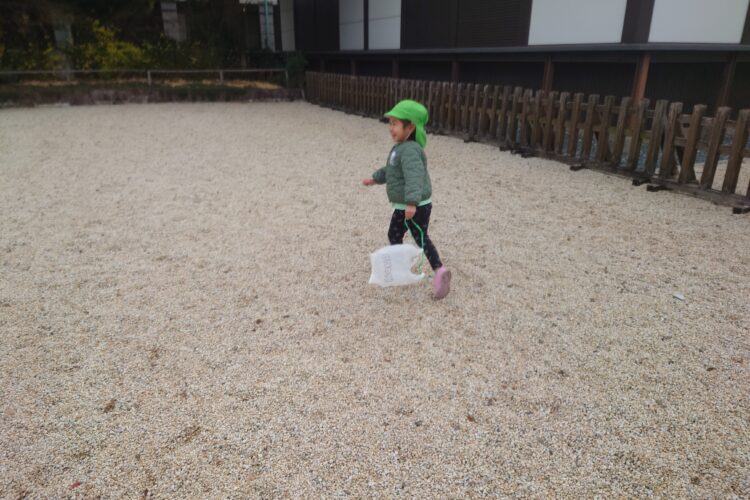 凧を受け取ると「みてみてー」と自分の凧を嬉しそうに保育者に見せてくれました😊