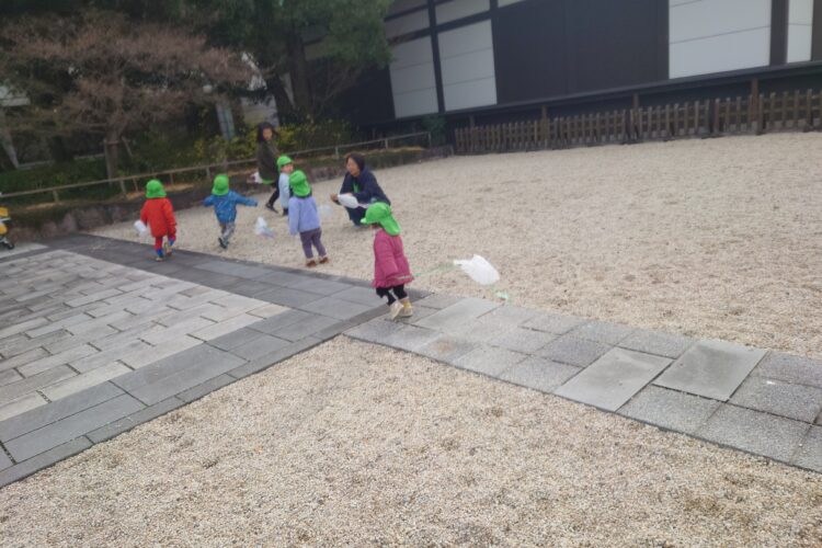 徳川園へ着くとみんなで作った手作りの凧を持ち、凧揚げをしました。