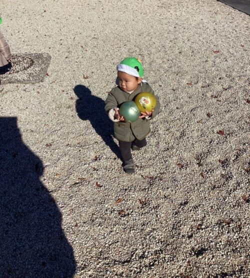 ボールを持って歩いて満足する子や
