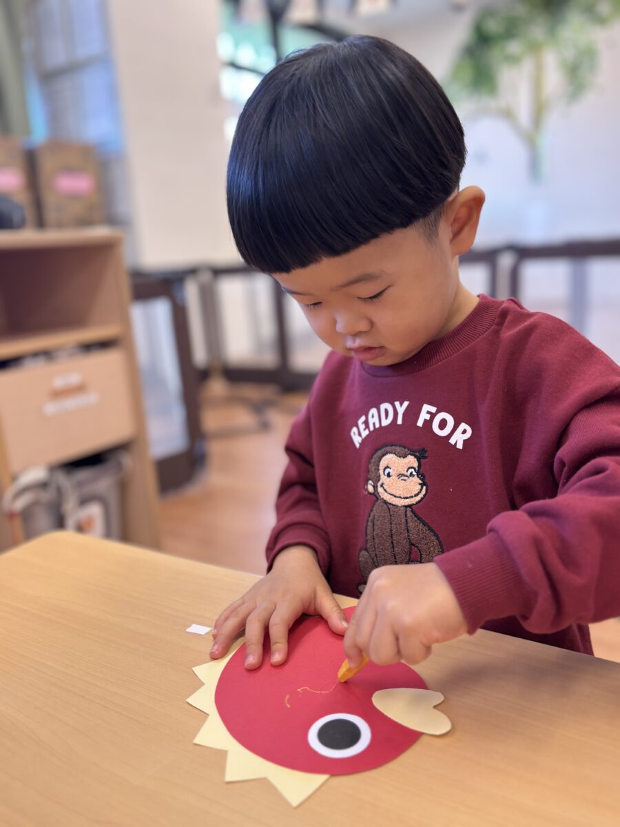 今日はきりん組さんとひよこ組さんは制作、