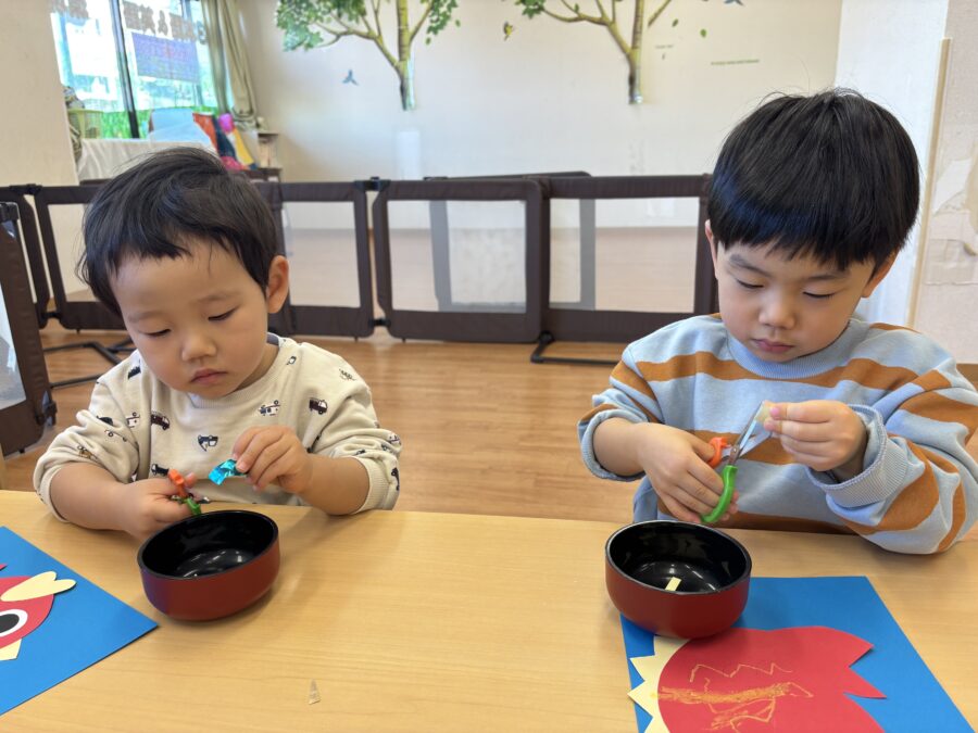 ハサミでチョキチョキ真剣な表情で作っていましたよー