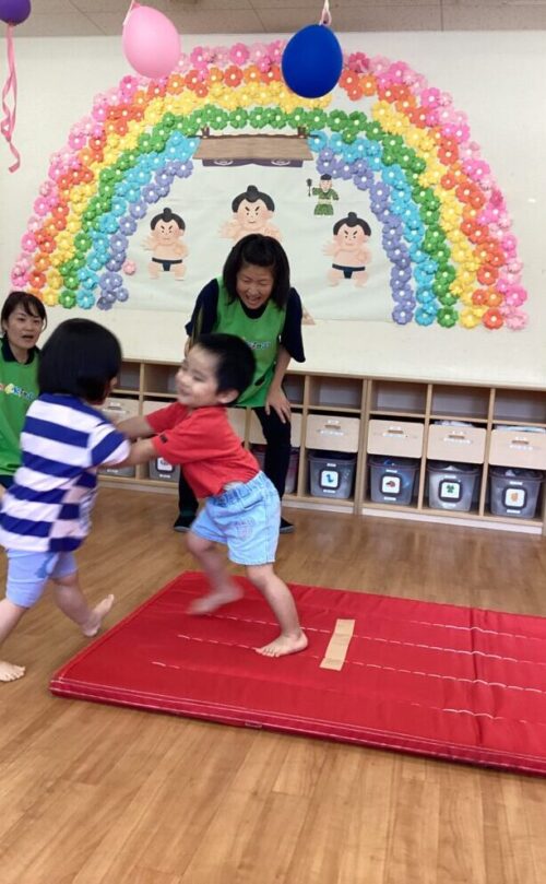 きりん組さんのを姿を見て真似しますよっ