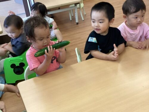 園のきゅうりとトマトも少しずつ大きくなってきています。