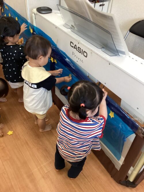 みんなでたっくさんの星をつけて綺麗な天の川を完成させました