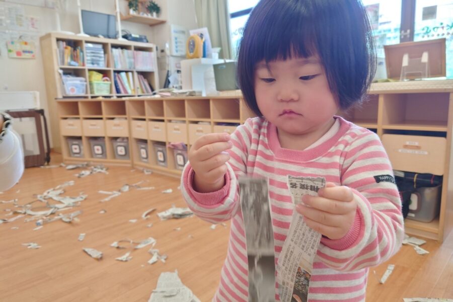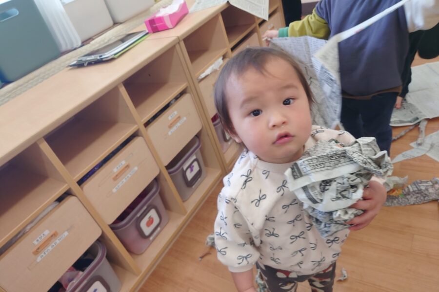 今日は、お部屋で新聞遊びをしました♡