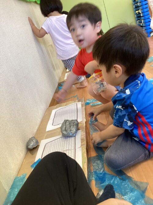 この貝はみんなで新聞紙を丸めて作りました♪♪♪