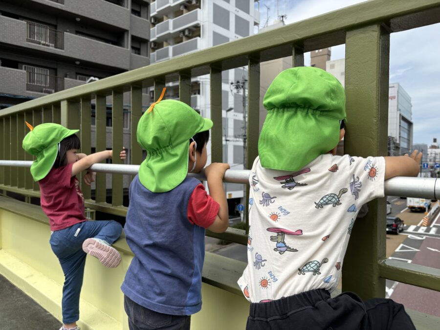 その後キリン組さんとヒヨコ組さんは歩道橋までお散歩へ行きました!「あ!トラック」と道路を通る車をみんなで楽しそうに見ていましたよ♪(๑ᴖ◡ᴖ๑)♪