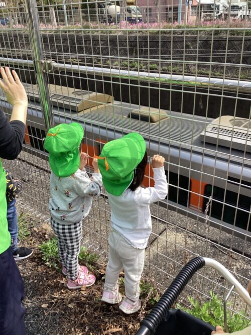 着くとみんな網越しに手を掛けて電車が来るのを待ちますっ!
