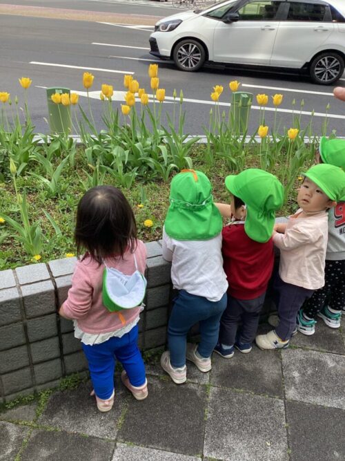 タンポポと黄色いチューリップが綺麗に咲いているのを発見!!