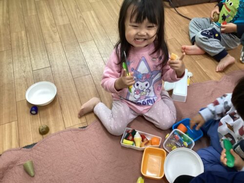 さて、今日はお部屋でのんび〜りとおままごとをして過ごしましたよ😌