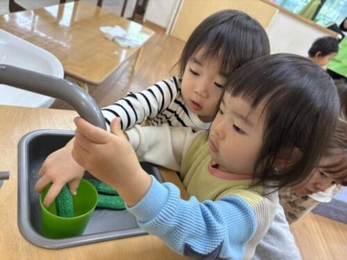 お友だちと協力してきゅうりを洗ってお料理の準備は満タン🌟