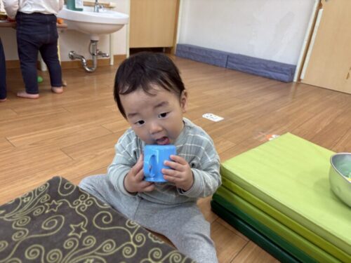 コップを上手に持って、ゴクゴクと飲む真似をしていました!