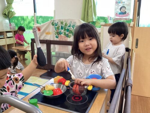 ということで、今日はお部屋でおままごとをして遊びましたよ!