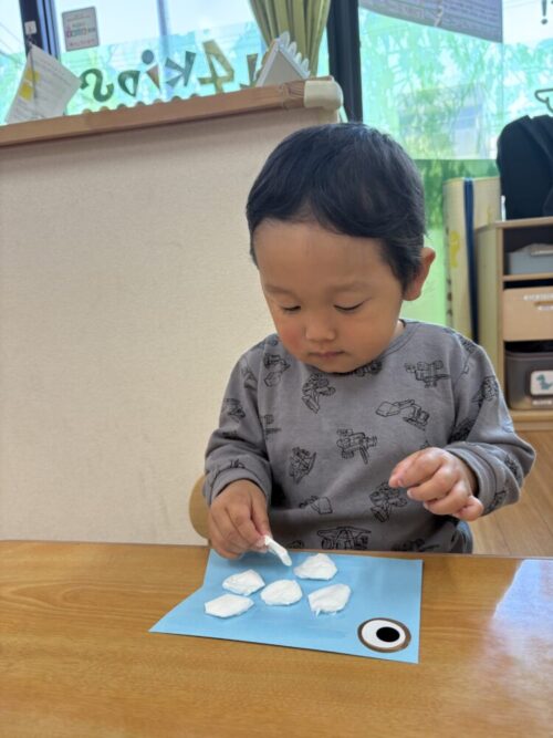 見本を見ながら貼る子、見本を見ずに自分の感覚で貼る子、それぞれでしたがみんな上手にできましたよ✨