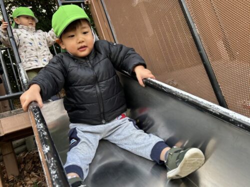 すべり台を繰り返し滑ったり、ロッククライミングのようになっているところに挑戦するお友だちも‼️